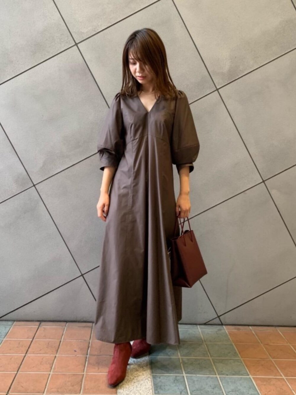 ●年齢:20代前半 ●身長:159cm ●普段サイズ:ワンピース 36 /シューズ 23cm 【サイズ感】 ワンピース:やや細身 トップス:標準的 シューズ:標準的 【コーディネートのポイント】 シルエットが女性らしいワンピースにボルドーの小物を合わせて上品な秋スタイルにしました。