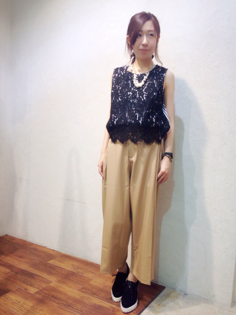 秋物新作がたっくさん入荷しております! トップスは正面がレースで バックスタイルはストライプです(^^) 黒レースは大人っぽくなりますね!