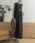 大人っぽい麻混のストレートシルエットのワンピース 。 ブラックはこんなカジュアル合わせにもおすすめ。