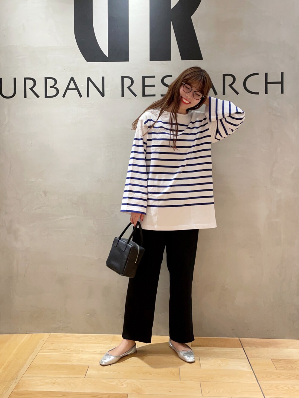 オーバーサイズが何と言っても可愛いボーダーTはシンプルコーデで◎ デニムじゃなく大人きれいめパンツ合わせが気分◎