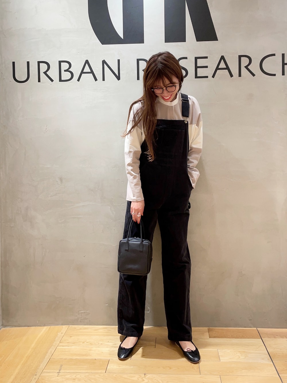 大人シルエットなコーデュロイ生地のサロペット♩写真は黒に見えますがチャコールグレーなのでのっぺりしすぎずおすすめです◎