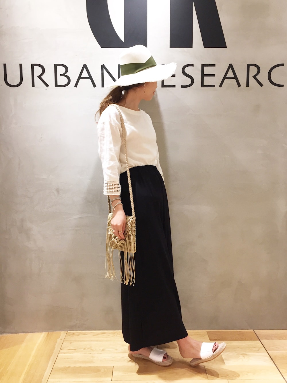 セットアップのパンツだけを使ったコーディネートです。サイドにスリットが入っていて動きが出て可愛い。
