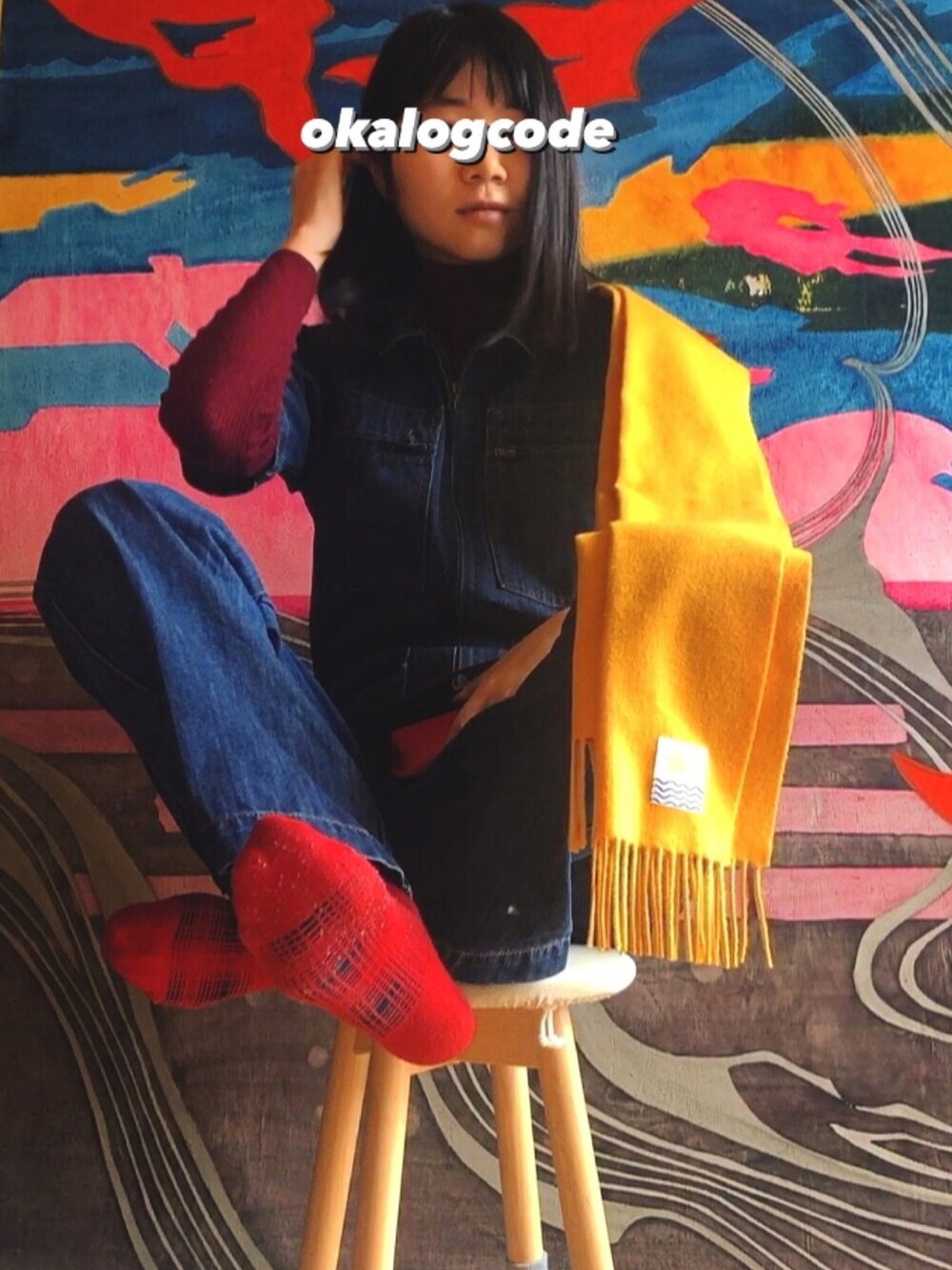 #colorful #カラフル #オールインワン #つなぎ #muffler #yellow #jeans #ジーンズコーデ
