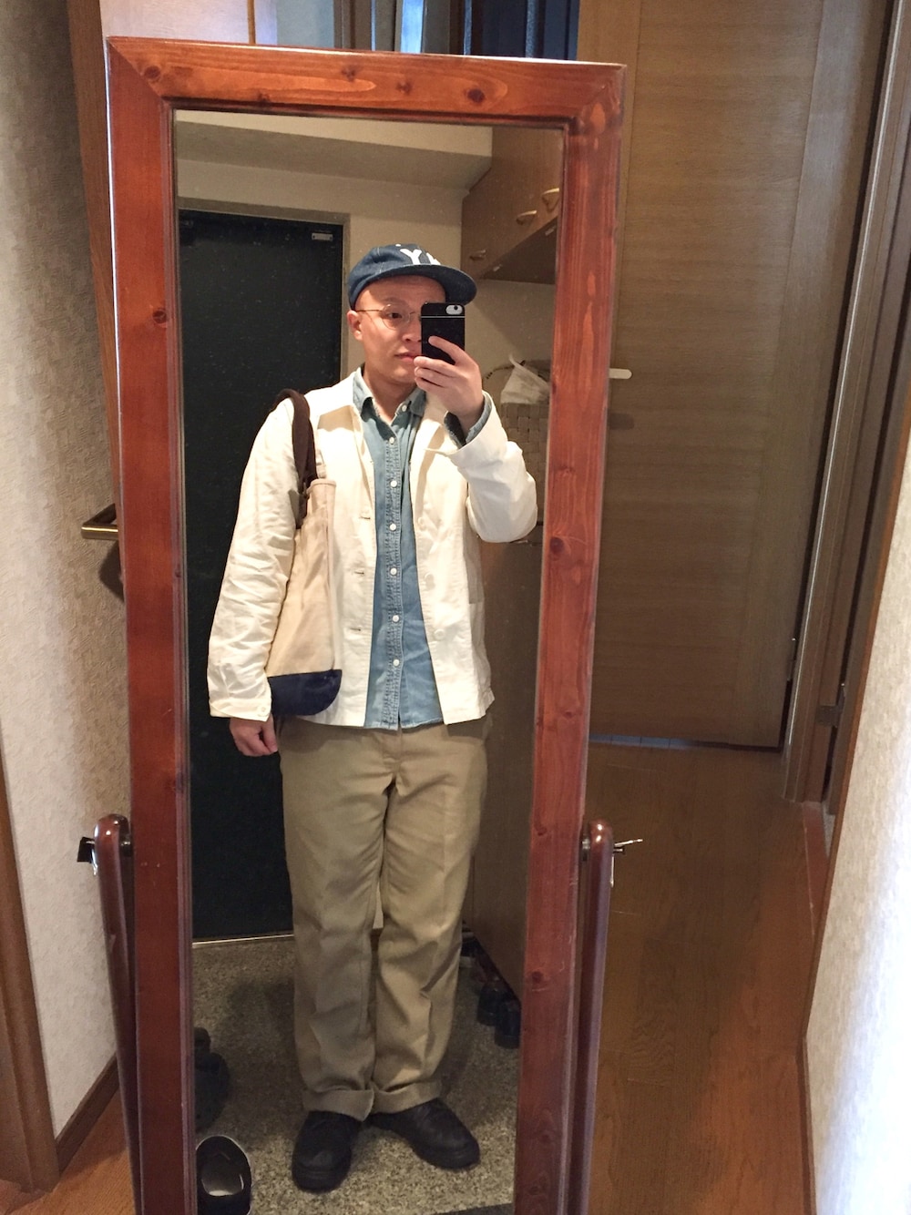 ワークテイストなのでトートは合う。 普段リュックばかりなのでたまには。 オフホワイトのカバーオールと組み合わせるとかなりデニムシャツとパンツの組み合わせの濁りみたいのが中和されてクリーンになる気がする。