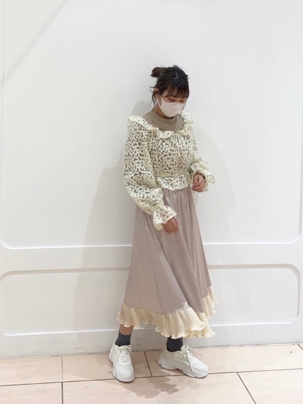 okamu🍦骨格ストレート(one after another NICE CLAUP)のシャツ/ブラウス「マーガレット刺繍テレコトップスセットブラウス」を使ったコーディネート