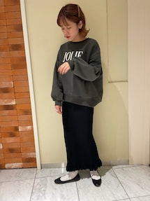 【身長】159cm 【パーソナルカラー】イエベ秋/骨格ウェーブ 【靴のサイズ】23.5cm/Mサイズ 【スウェット】フリーサイズ 裏起毛であったかい◎ ゆるっと感がかわいい一枚!! シンプルなロゴで着回ししやすいです◎ タートルとの重ね着もおすすめです! 【スカート】フリーサイズ 後ろゴムで楽ちん◎ ハイウエストでスタイルアップ効果バツグン! 後ろのレースアップがかわいいので ウエストインがおすすめです!! 冬らしいあたたかみのある素材です◎ 【ブーツ】23.5cm/Mサイズ リアルバイしました〜!!! やっと理想のロングブーツに会えた.... 筒の細さがほどよい!!変に余ると足が太く 見えるので、この細さはちょうどいいです! 長さもちょうどいいんですよ!!!笑 足が短く見えない、絶妙な長さ!!!笑 ヒールもちょっとある程度。 履いてる感覚としては、ぺたんこと同じ感覚 なので、とっても楽ちん◎ でも、見た目はヒールできれいめな女っぽさも 演出できます!!本当にお気に入りのブーツです!