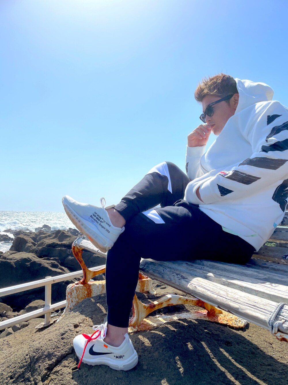Off-White×NIKEスニーカーコーデ Off-White××NIKE AirMax97 THE TEN Off-WhiteのWhiteジップパーカーSサイズ🎖 offwhiteは大きいサイズを選ぶと丈が長くなってしまうのでSかMでおk👍 NIKEのレディースエットパンツSサイズ🎖 ぶっちゃけ太ももぱちぱちです👍(笑)
