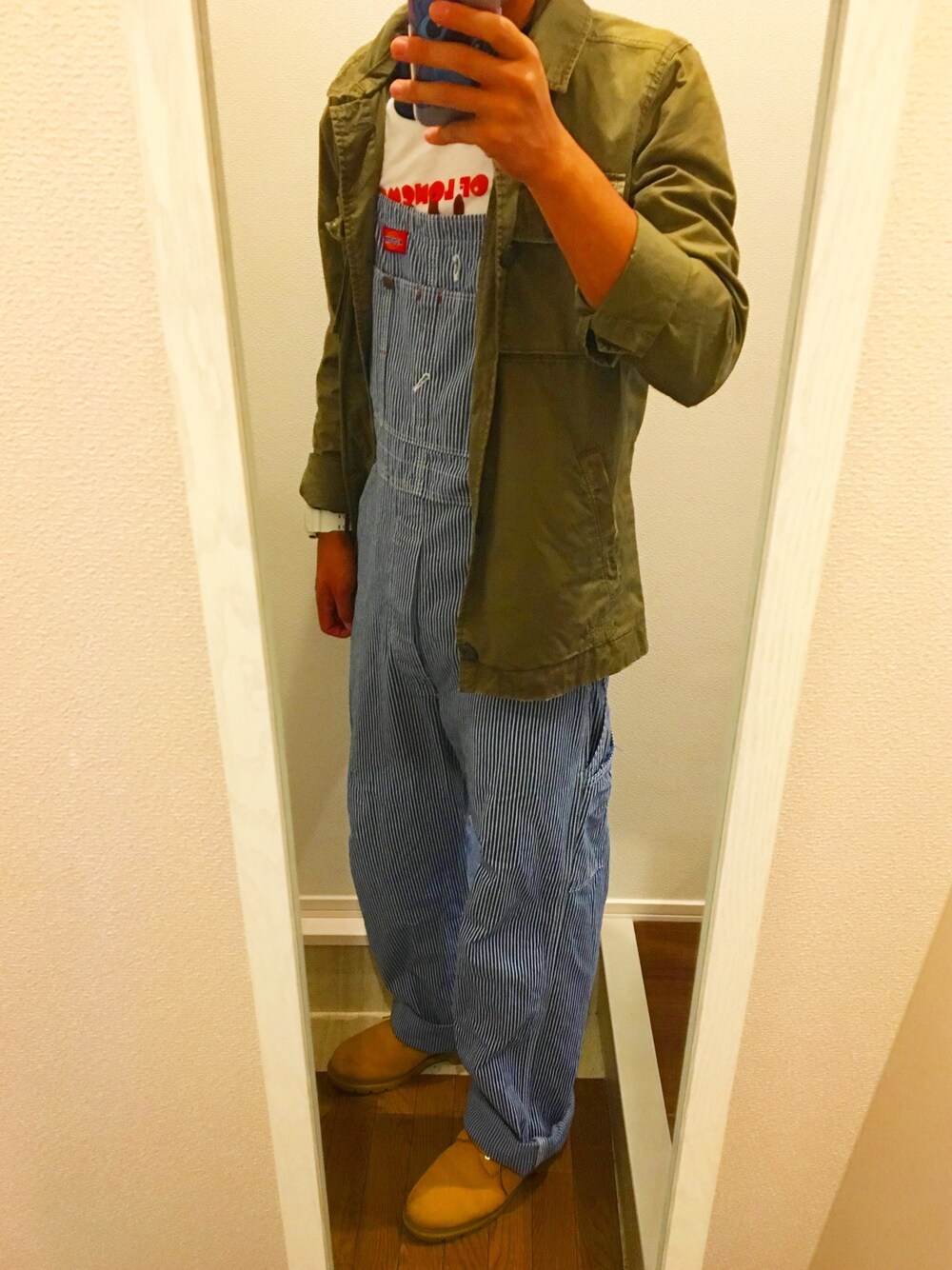 ヒッコリーストライプのオーバーオール良きです!!