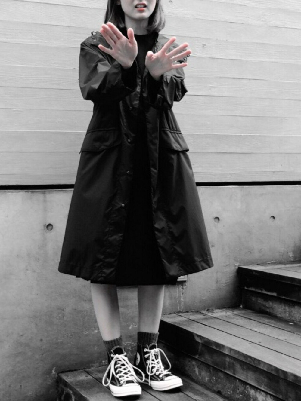 デサントポーズのパッカブルコートやっぱりシルエットがかわいいなとふと。 手がかめはめ波みたいですね。 いや、そうでもないですね。