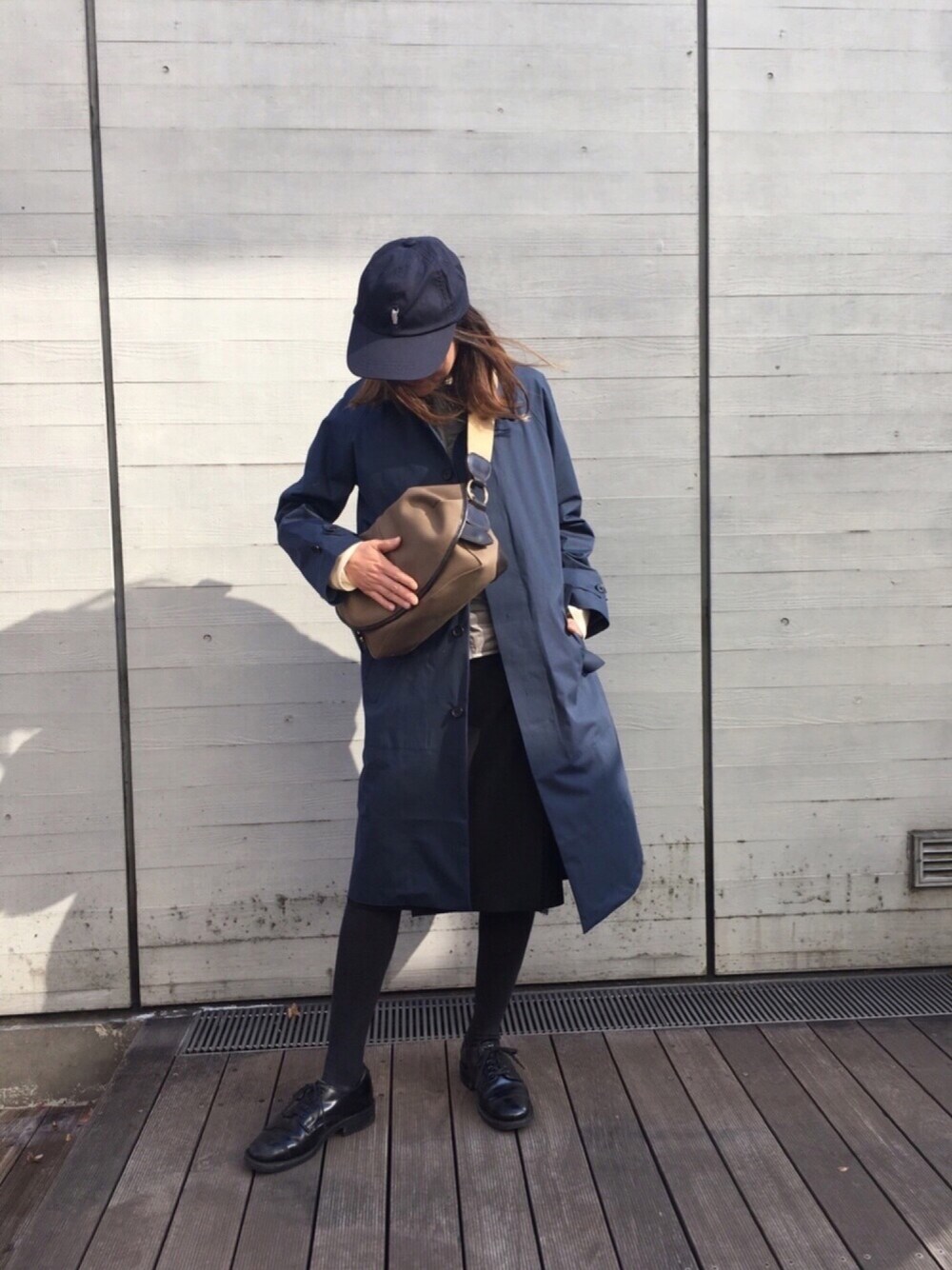 店長のcapを拝借しました。 DESCENT PAUSEのステンカラーコートはゆったりめのシルエットなので、インナーダウンや厚めのニットなどレイヤリングにもってこいです!