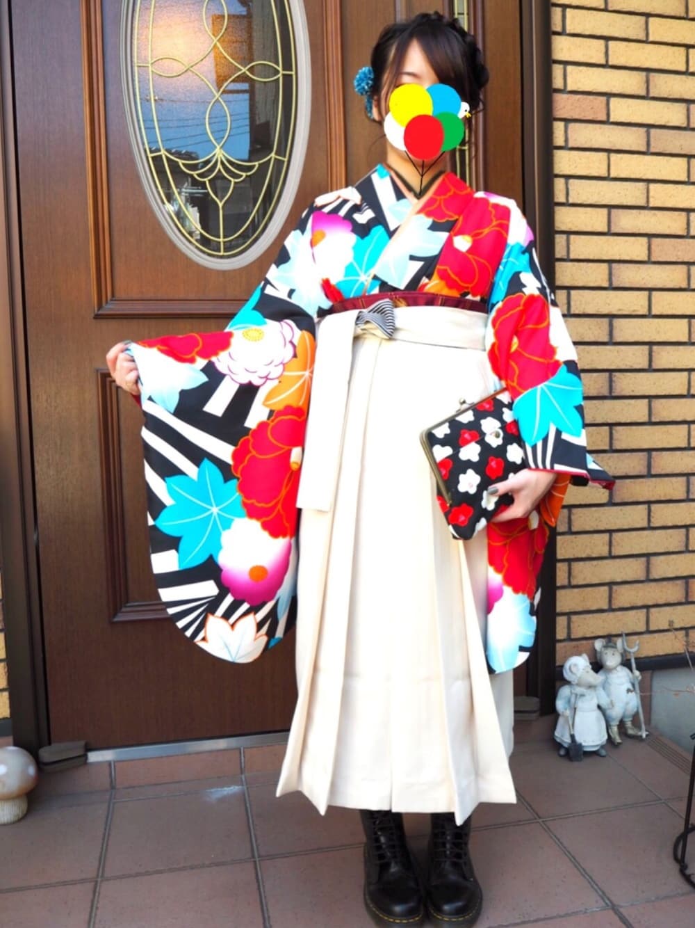 袴にはマーチンと決めていて、 最初8ホールで行こうと思っていたのですが短く、 10ホールに急遽履き替えた。。。 鞄も和装によく合うもので、みんな巾着の中、可愛い!と好評で嬉しかったなぁ。 どちらも贈り物で、とてもよい記念になりました。 大事にしよう。。。