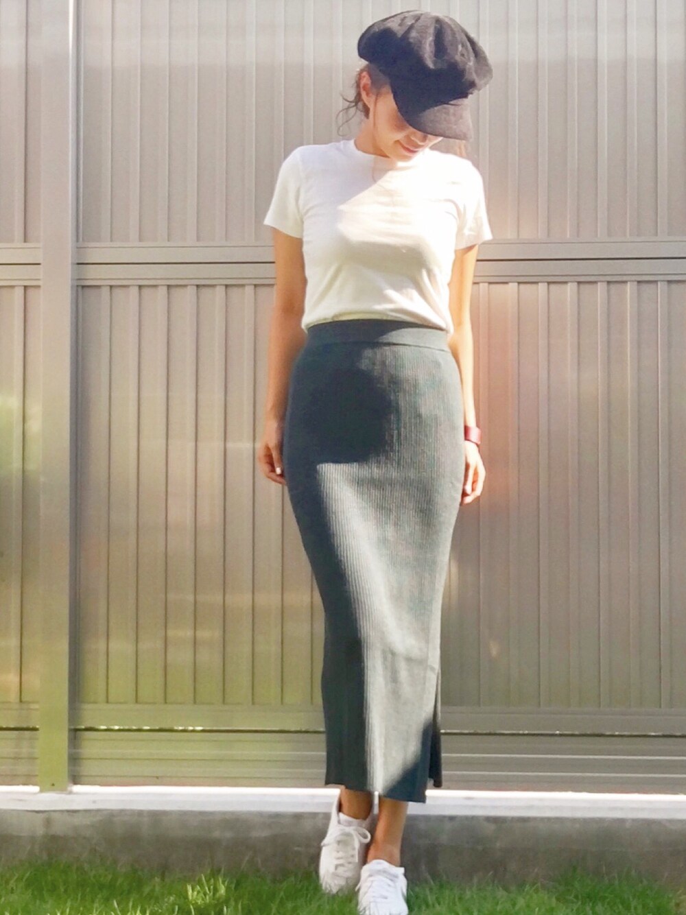 今年はユニクロのリブニットスカート買えました☺️✨ スニーカーと合わせてたくさん着たいな✨✨