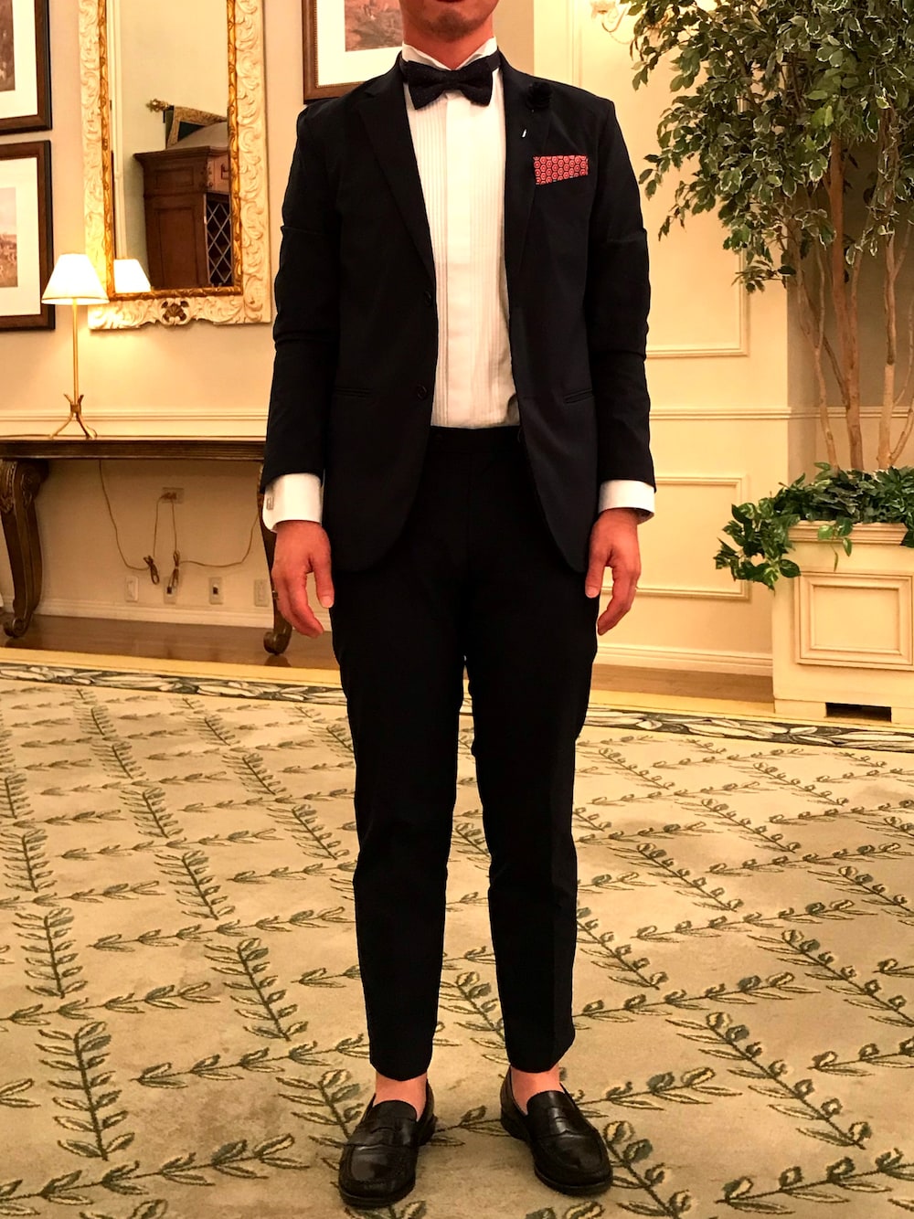 後輩の結婚式。 ジメジメでホント暑い😵 蝶ネクタイとポケットチーフ変えるだけでも雰囲気少し変わるなー😁