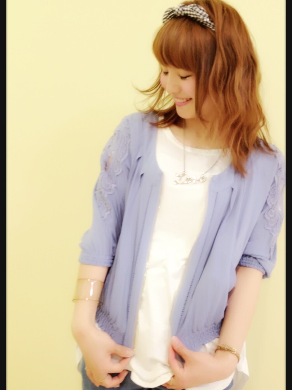 袖のレースモチーフがポイント♪ 薄手の羽織はこの時期活躍しますよ(*^_^*)