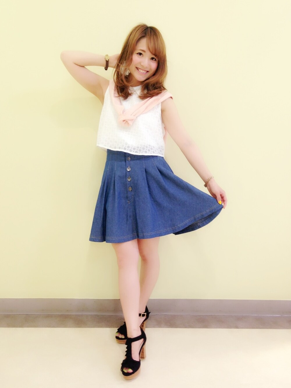 こちらは、 ビスチェとスカートに分けられるタイプのワンピースを スカートとして……♡ フレアスカートは、 後ろがゴムで楽チンなのに、 スタイルを良く見せてくれる優れものですっ★☆ 長さもあるのが、嬉しいお洋服です(*ノ∀ノ)♡