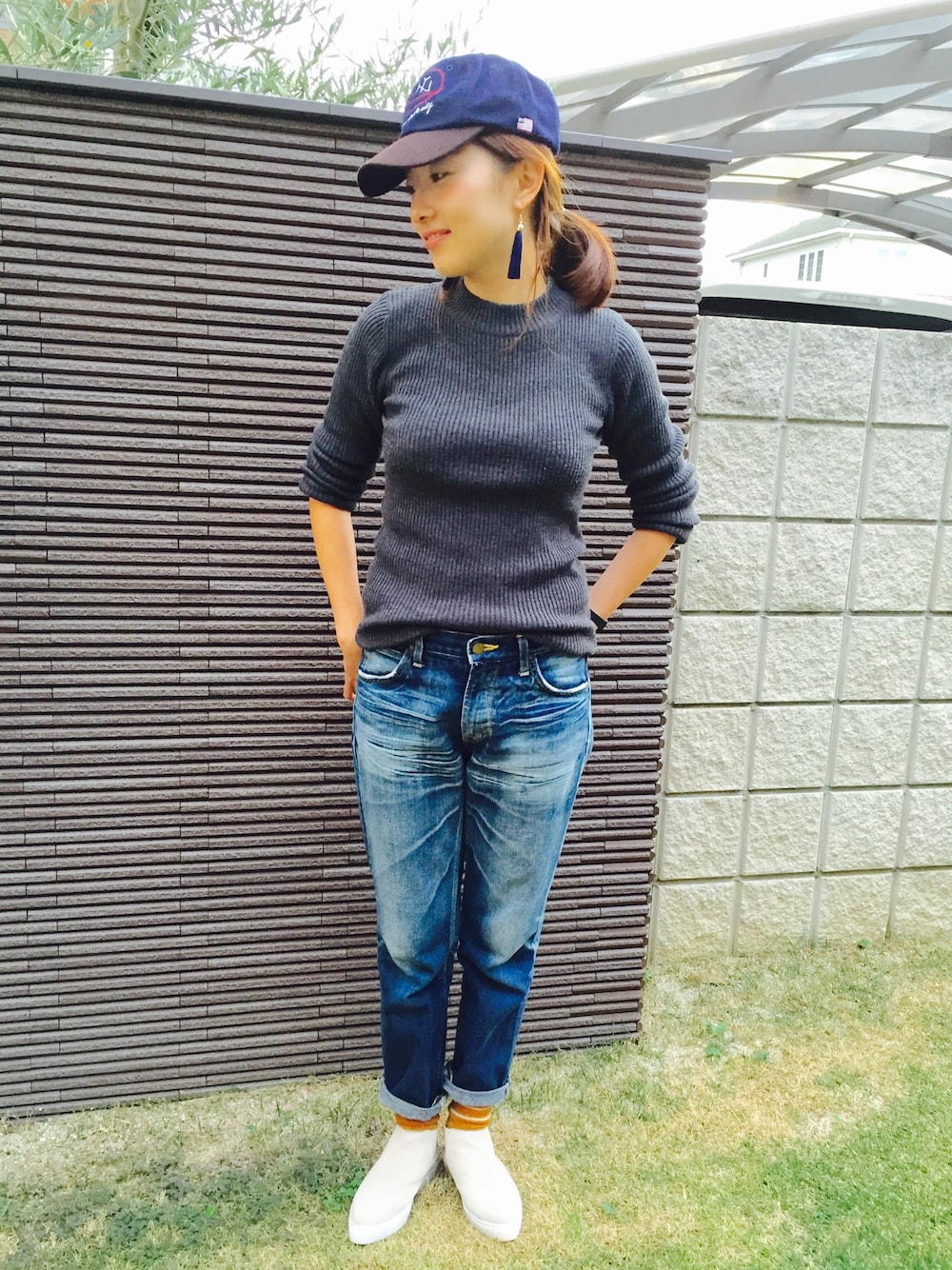 旦那の帽子を借りたくて、このコーデに🙌