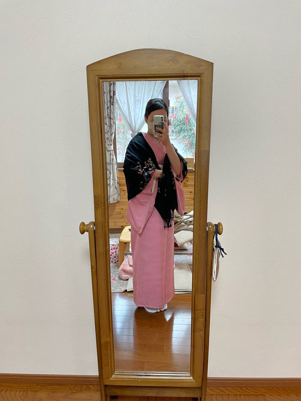 ブラック系のストール/ショールを着用したレディースの冬コーディネートの1枚目の写真