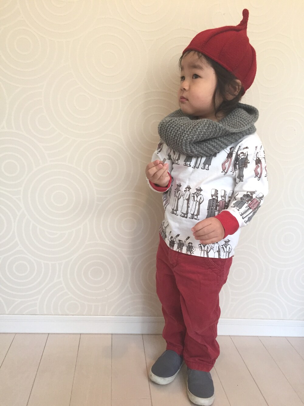 今日はインスタで3色こーでのイベントに参加したので赤、白、グレーでなんとなく😅😅 子供の服選びって楽しい〜〜٩(*>▽<*)۶