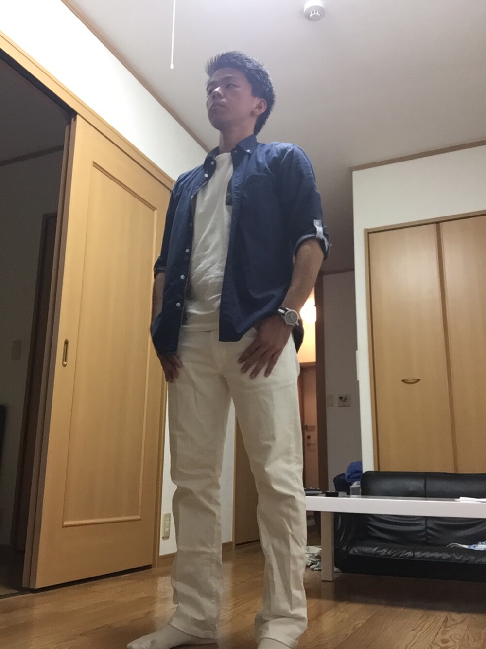 ハイサイ(^o^)/いつも見にきてくれていいね、saveありがとうございます(*^o^*) 白のポケットTとパンツにネイビーのシャツ!!! 昼間はデージ暑くてもう夏!!!ってぐらいの気温だった笑″ 今日は飲みに行く前に着替えながら缶ビールで1杯やってます笑″