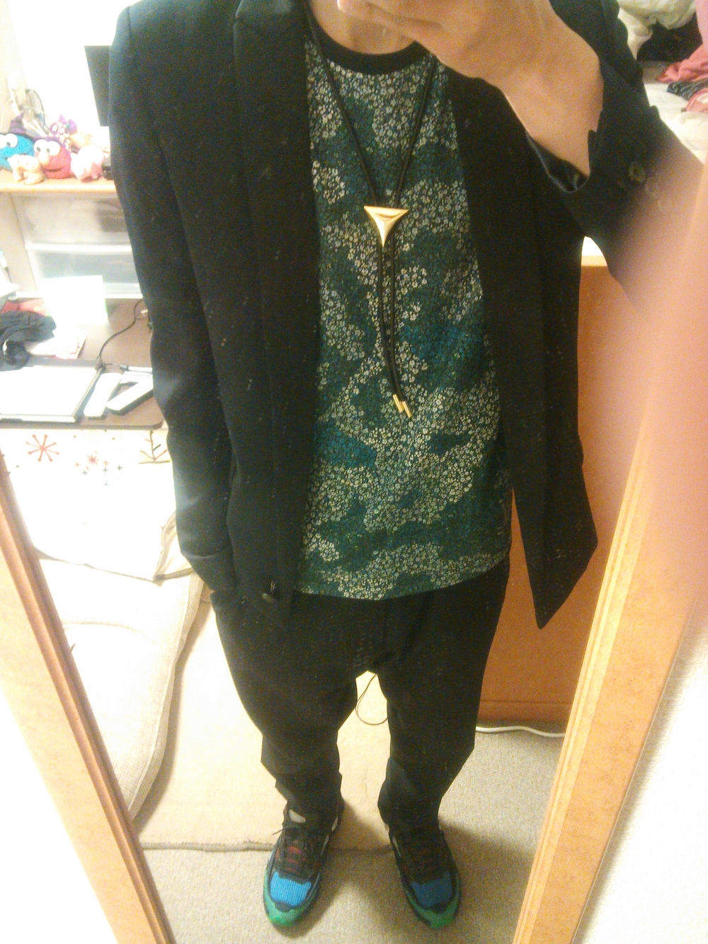 ジャケット:diet butcher slim skin パンツ:diet butcher slim skin セットアップをカットソーとスニーカーではずしました。 ジャケットの絶妙な丈感とパンツの程好いサルエル具合がお気に入りです。