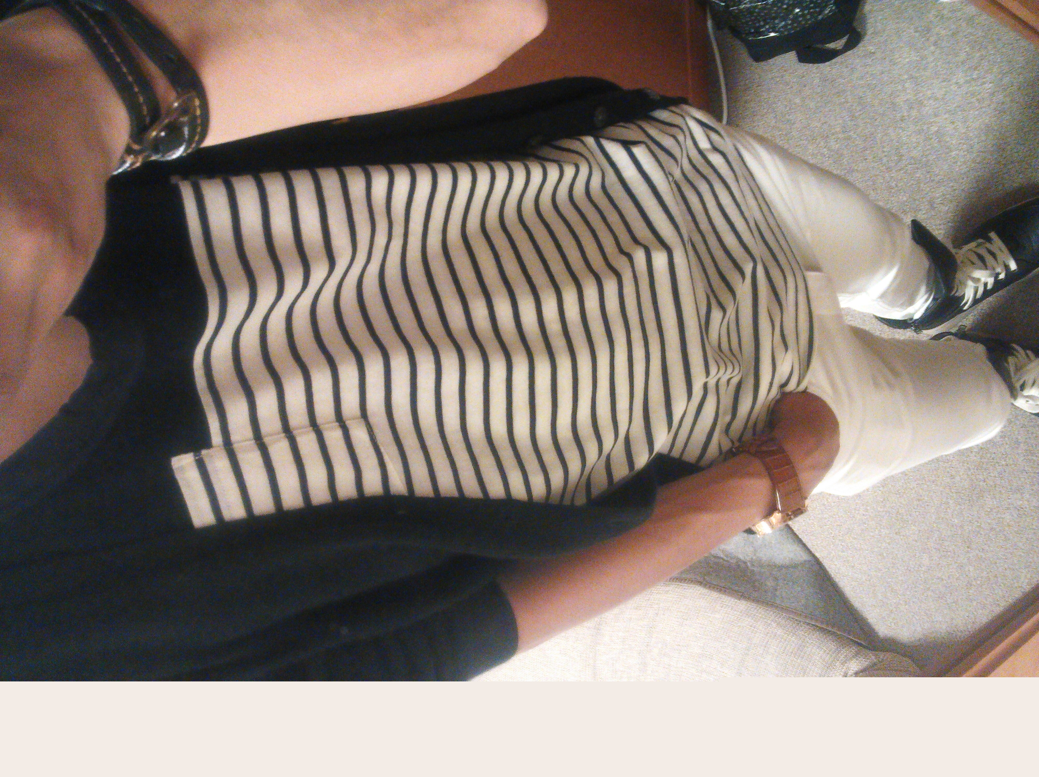 ネイビーと白で爽やかに♪ ずっと気になっていた「ヨコシマの集い」にタグ付けしてみました笑 このカットソー、よく見るとポッケだけ2段程ずらしてあるんです。しかも、ボーダーの切り替えは脇の下辺りまであるという拘り様…首もとのユルさと素材の切り替えがいい感じです。