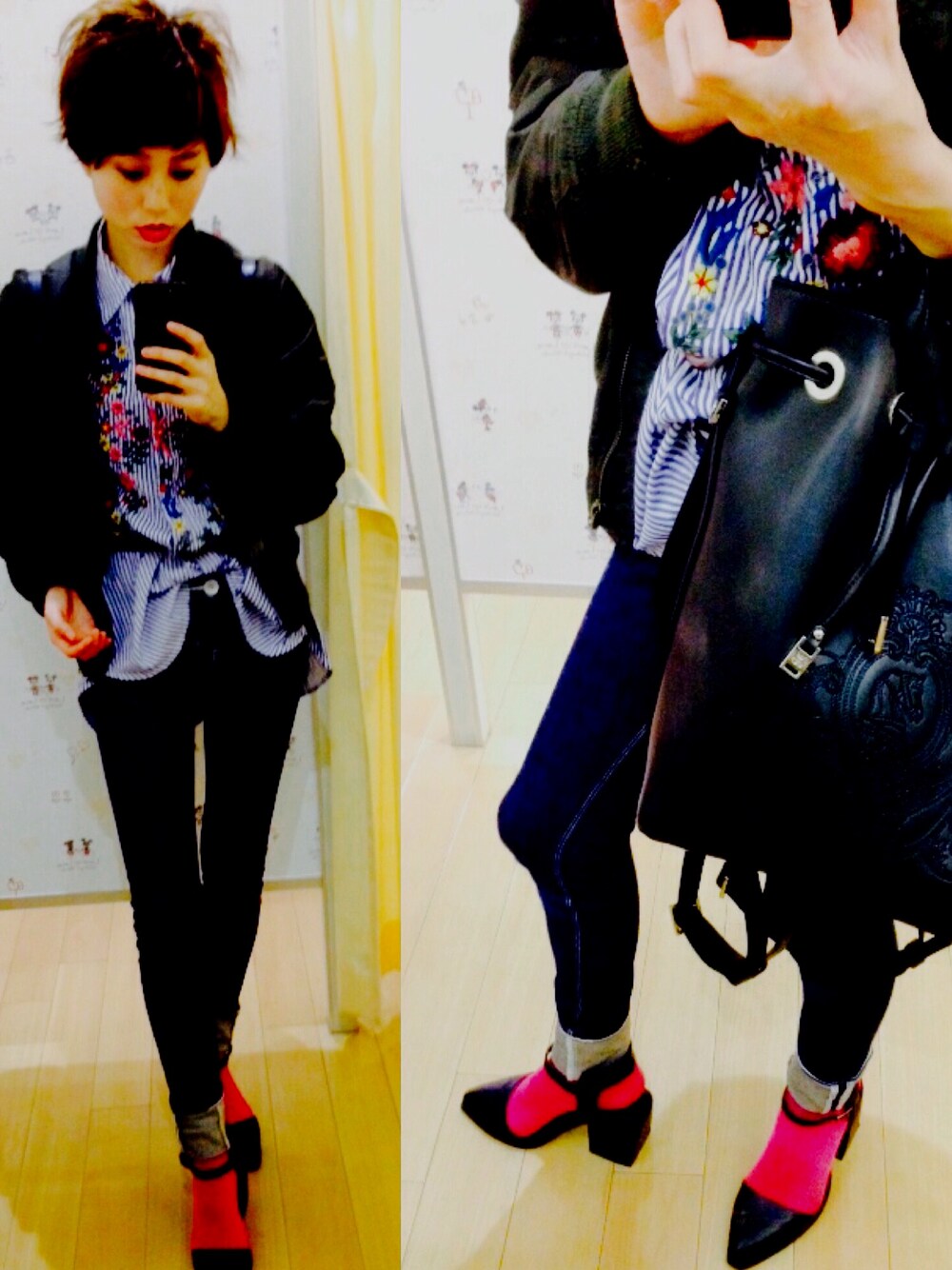 靴下をビビッとなピンクで個性をつくってみたぁ〜♡