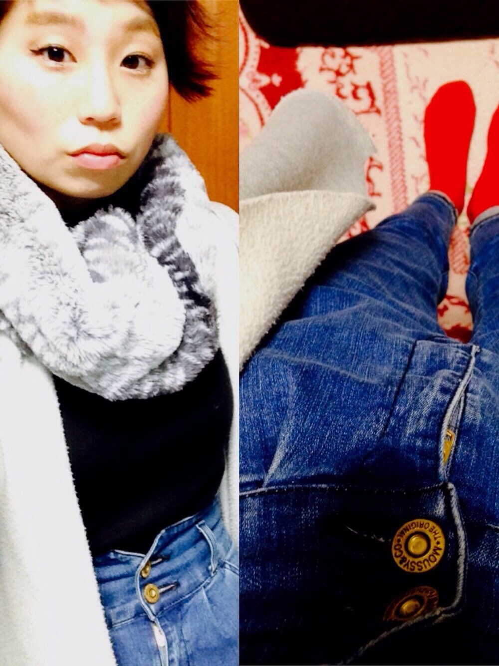 このハイウエストのデニムゎジョガーパンツみたいな形でとても大好きっ♡ スキニーもいいけどやっぱりボーイズデニムっぽい形がいいなぁ〜♡ トップスゎ3色買いしたUNIQLOのハイネックニット‼︎