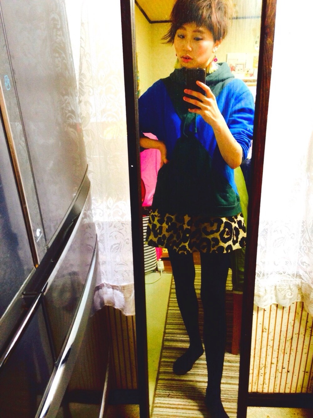 今日ゎ寒いのでパーカーでぬくぬくと♡スキニーも考えたけどここゎレオパード柄のスカートで個性派コーデ♡ やはり春が待ちどうしいのか奇抜なコーデばかりしたくなる笑