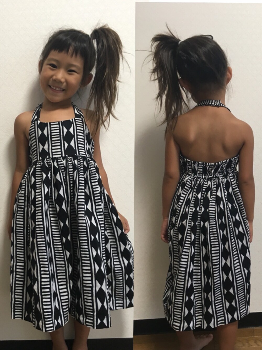 ブラック系のワンピースを着用したキッズの夏コーディネートの1枚目の写真