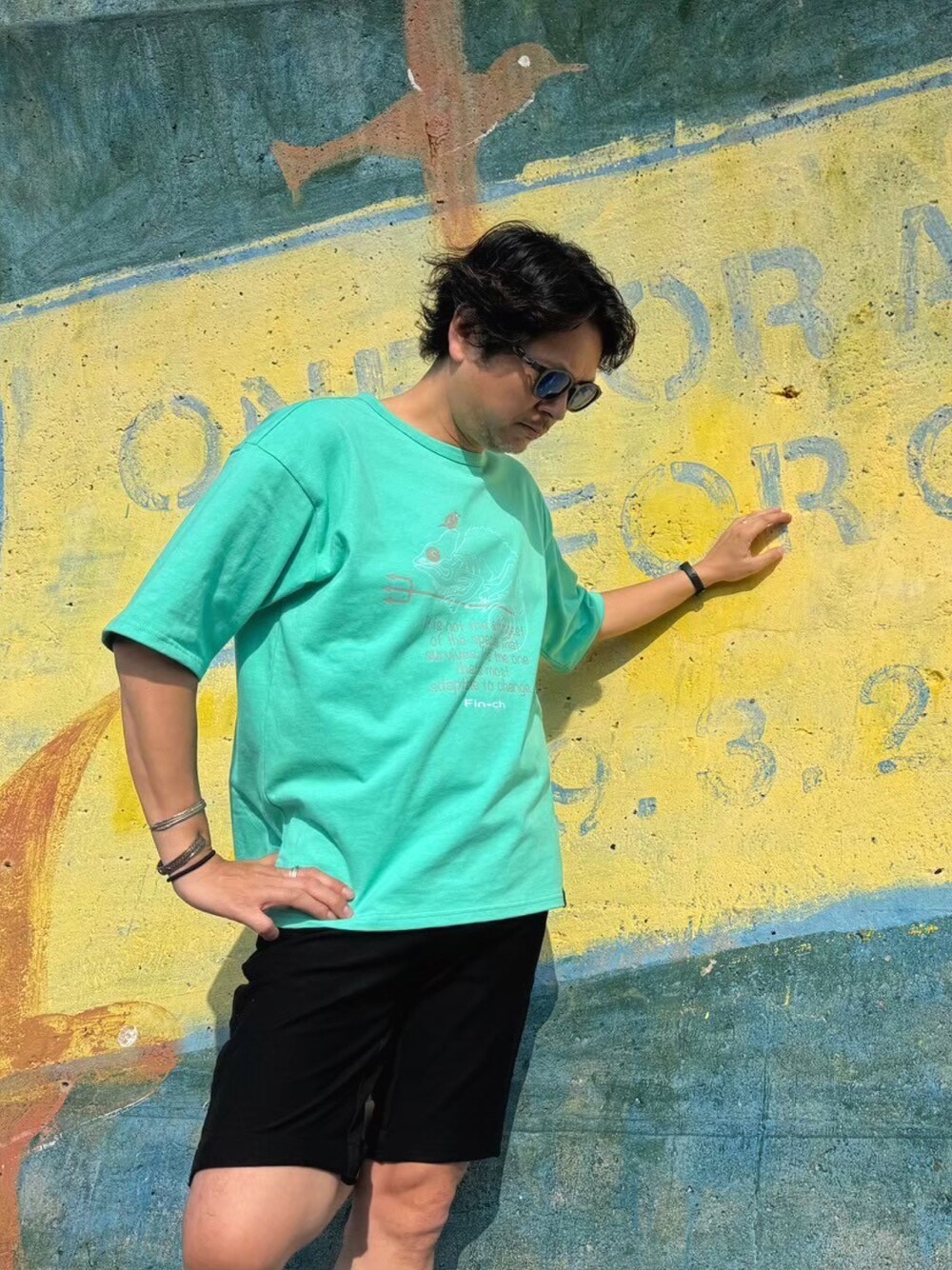 アウトドアブランドFinchのコーディネート。南国の眩しい陽射しに映える花緑青色のコットンリネンに「人間をダメにする」とまで言われている超絶楽なハーフパンツにて。 https://finch.ocnk.net/