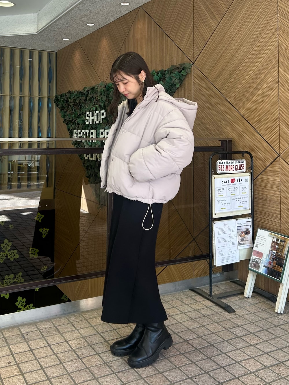 おかじ(ま)(natural couture)のダウンジャケット/コート「フード中綿ジャケット」を使ったコーディネート