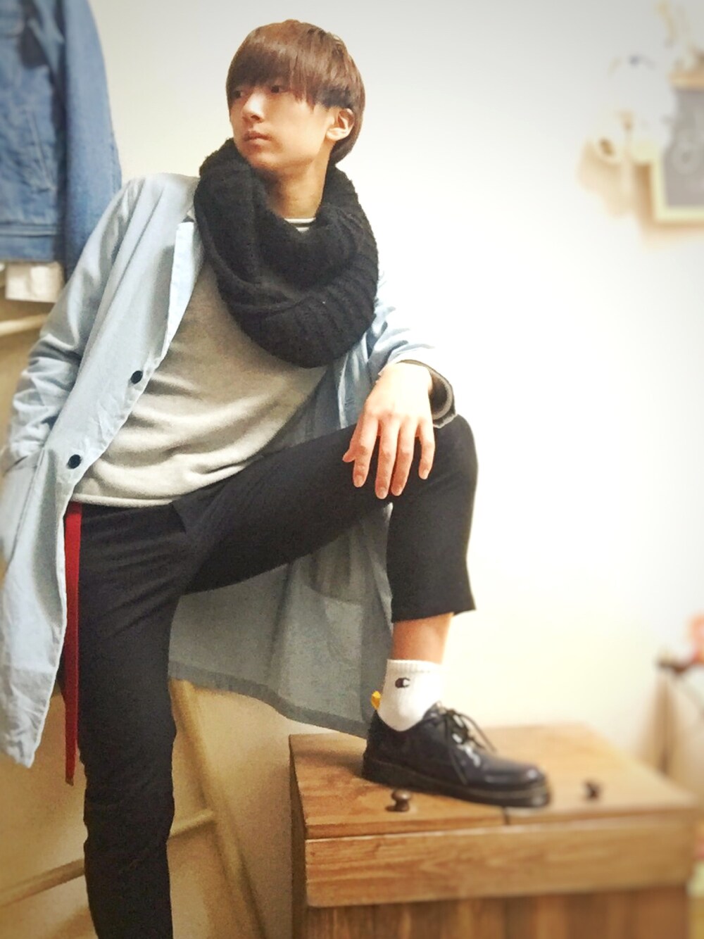 昨日の方がアングル良かった。笑 スヌードはちなみにWEGOのやっすいやつですね🙃 レイヤード利かせればよかった、、、 デニムコートはカジュアル感強いので中身は綺麗目でまとめたことがポイント🙄
