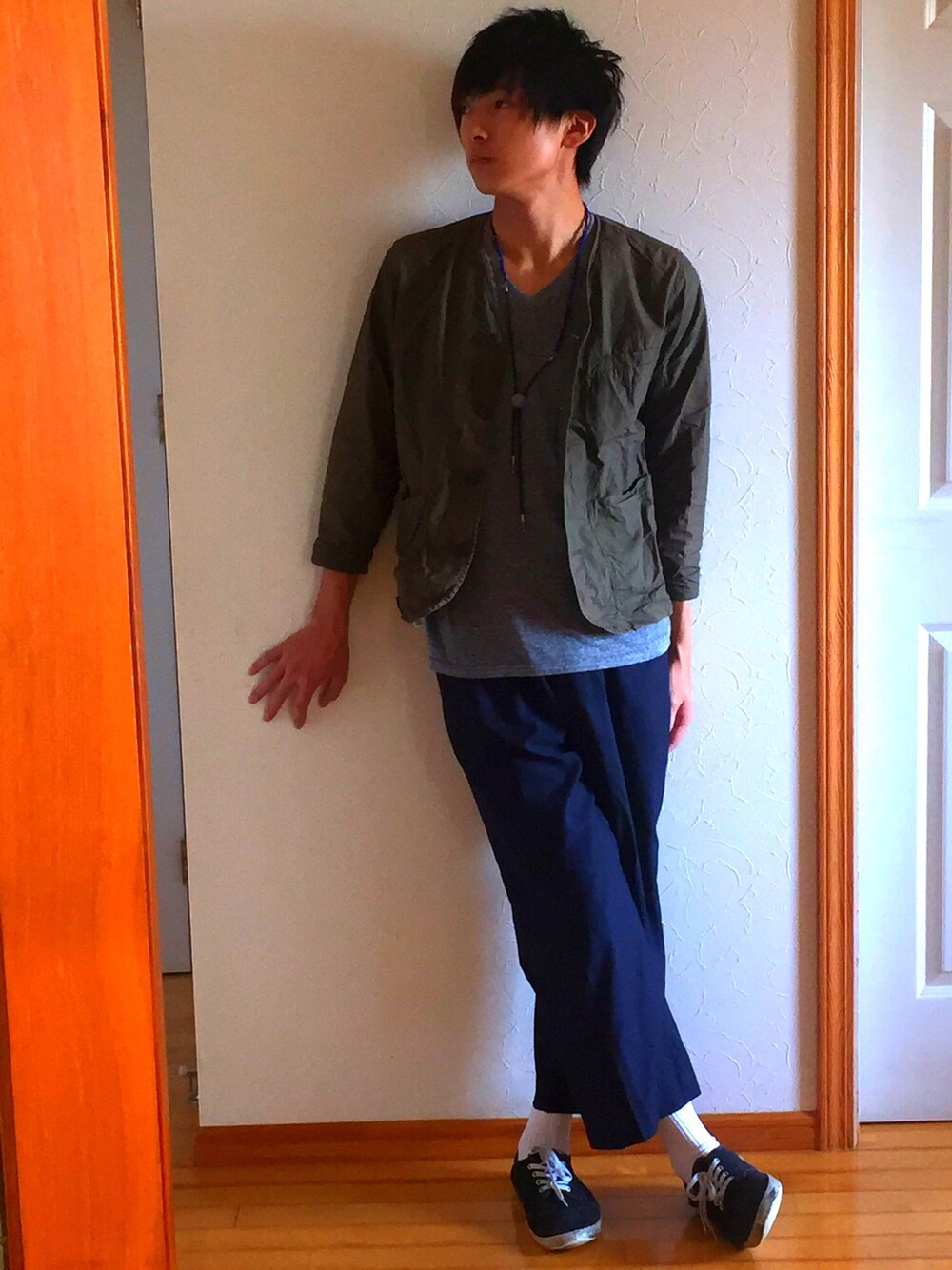 今回のポイントも綺麗目過ぎず、可愛過ぎずの大人カジュアルな感じにした所です。 一回ローファーでやってみたのですが、綺麗目にすごい寄ってしまったんでスニーカーにして、カジュアルさを出しました笑 もう一点は、白靴下ですね。全体的に落ち着き過ぎる印象だったので、白い靴下を差し色にすると軽い感じになってちょうど良くなったなと自分でも思います。靴下って大事や!笑 あー、、、シンプルな革紐のネックレスがほしい。 少しでも良かったら良いね&フォローしてやって下さい♪