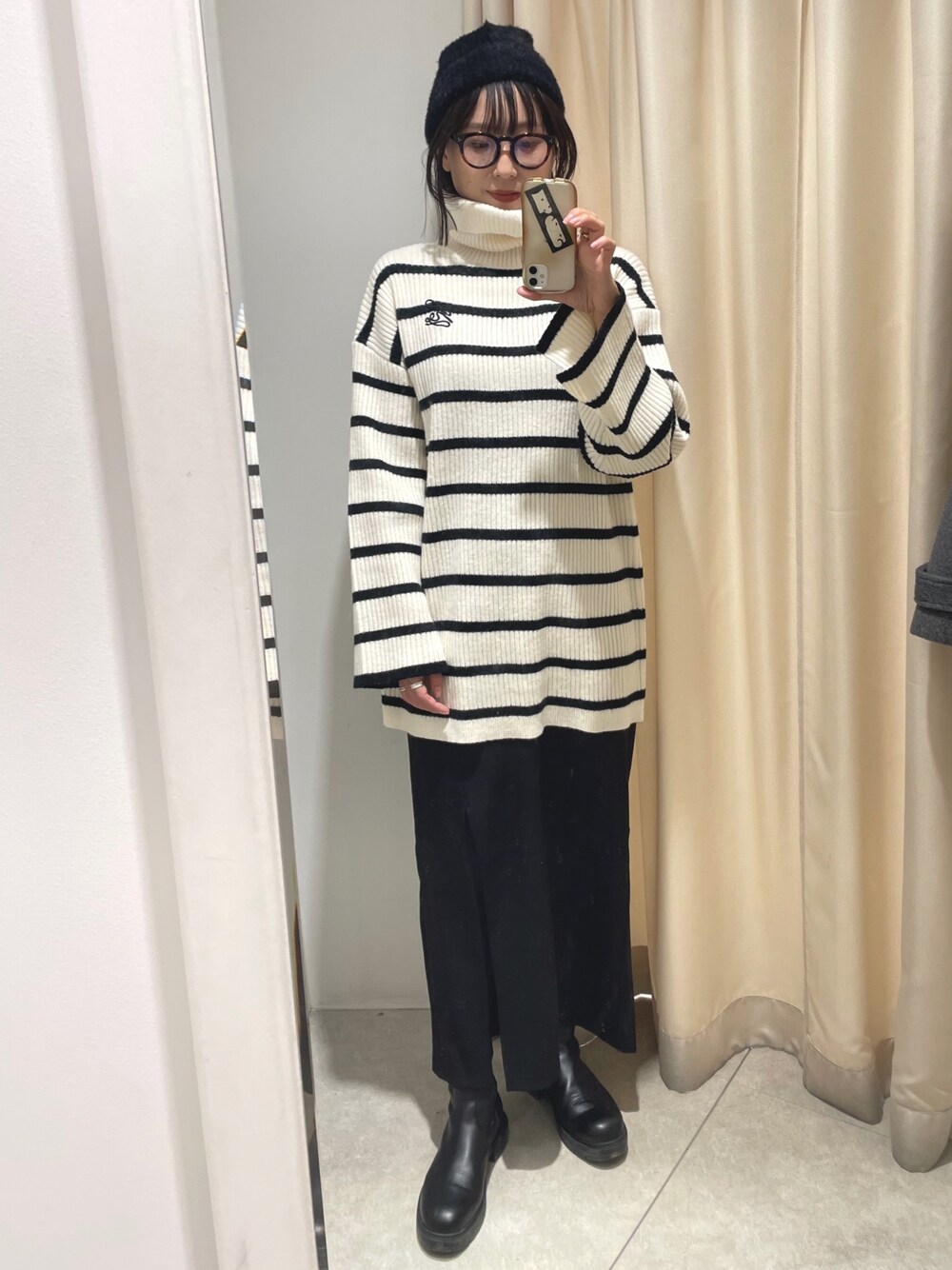 migu(one after another NICE CLAUP)のニット/セーター「NC刺繍ハイネックニットミニワンピ」を使ったコーディネート