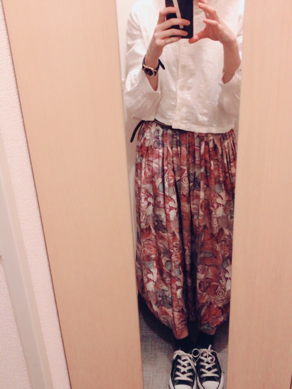 古着の派手柄すかーとに レースのブラウスを(^_^) ライブに行ってきた格好。