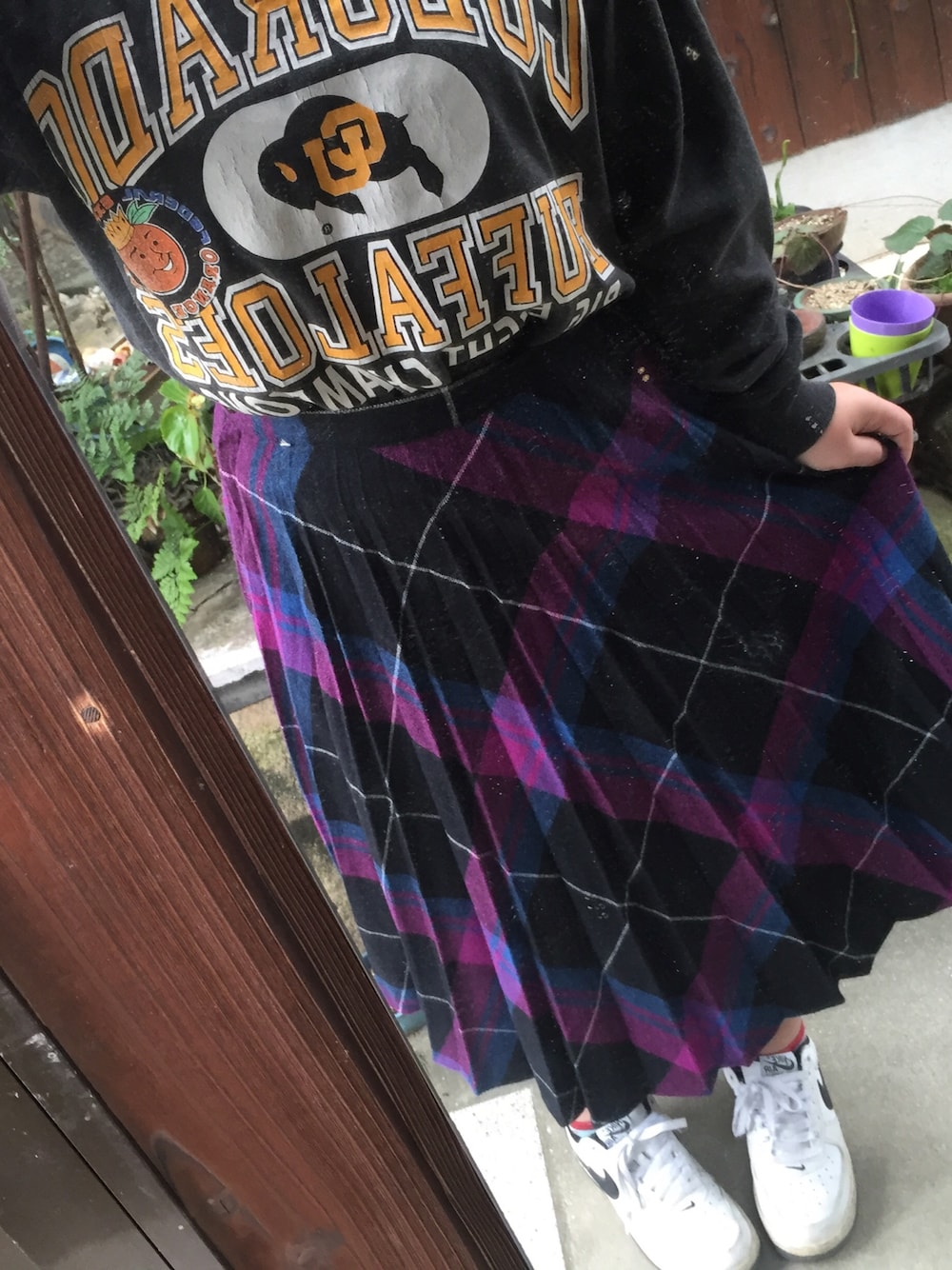 古着のスエットのオレンジの顔が何とも言えないシュールでお気に入りです( ¨̮ )