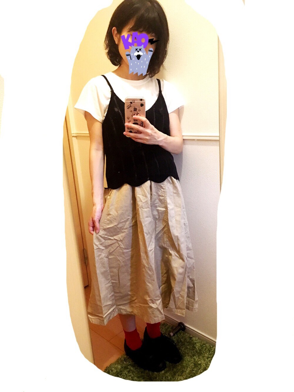 つぶこのトップス「透かしニットビスチェ×Tシャツセット」を使ったコーディネート