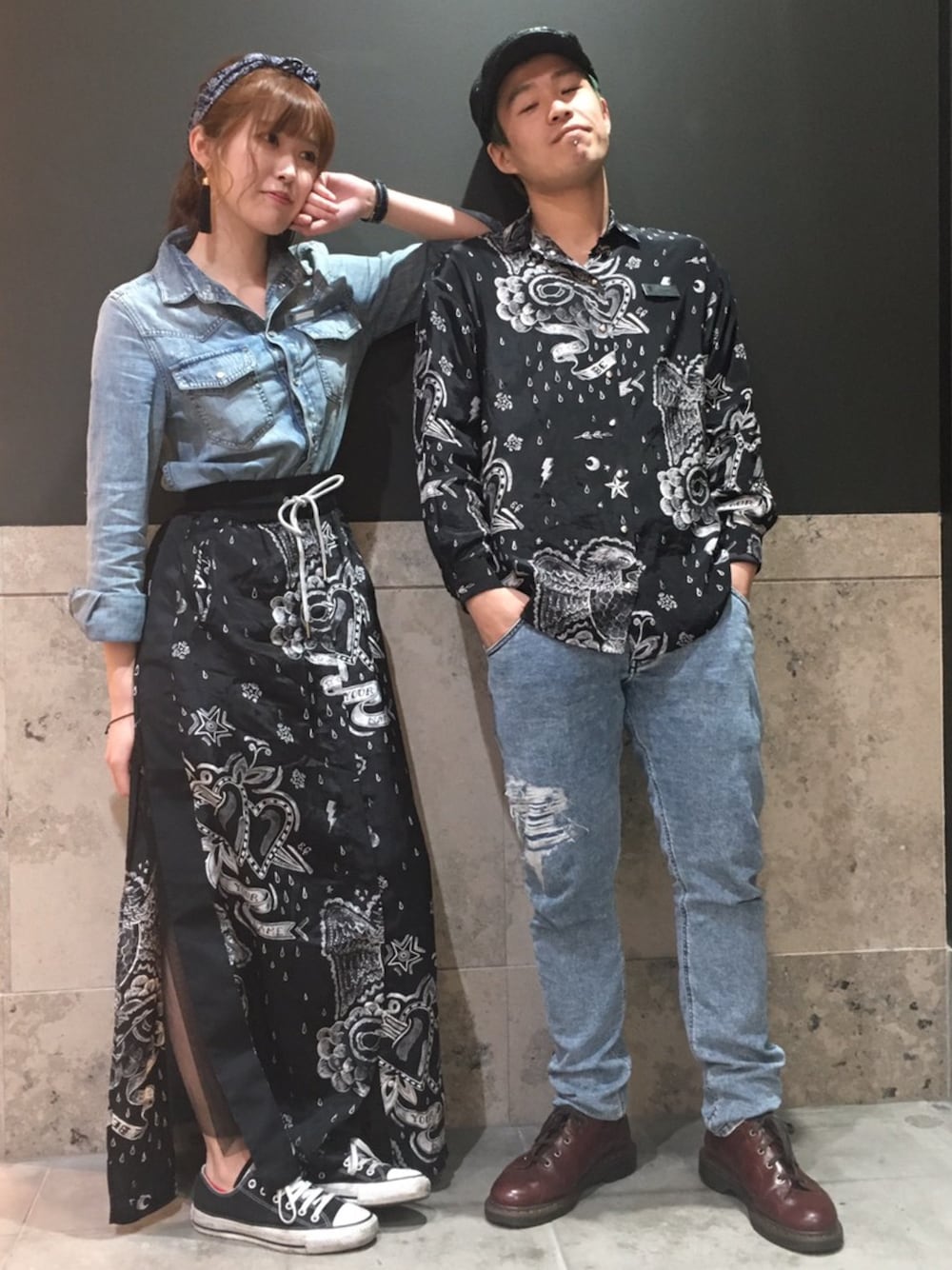 偶然のペア感。 タトゥーシャツ&スカートめっちゃ可愛いんで是非試してみてください🤩 メンズでも楽々入るオーバーサイズです🤗