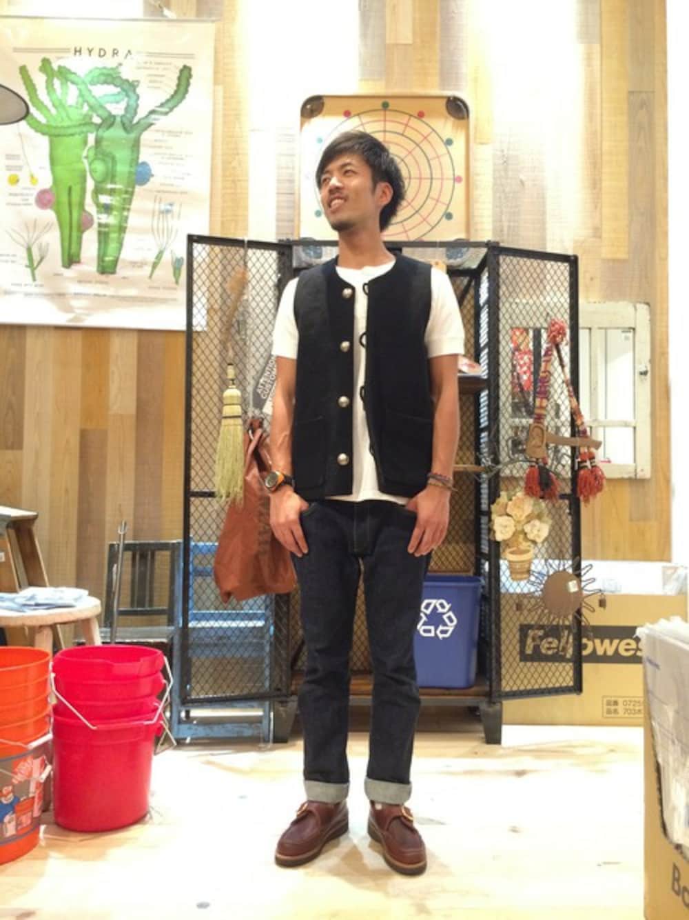 ヘンリーネック (FREAK'S STORE) ベスト (FREAK'S STORE) パンツ (FREAK'S STORE) シューズ (FREAK'S STORE)