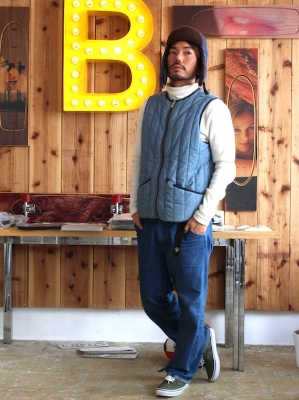 fumioのハット「【Lee】 TRAPPER HAT DENIM/リー トラッパー ハット デニム×ボア」を使ったコーディネート