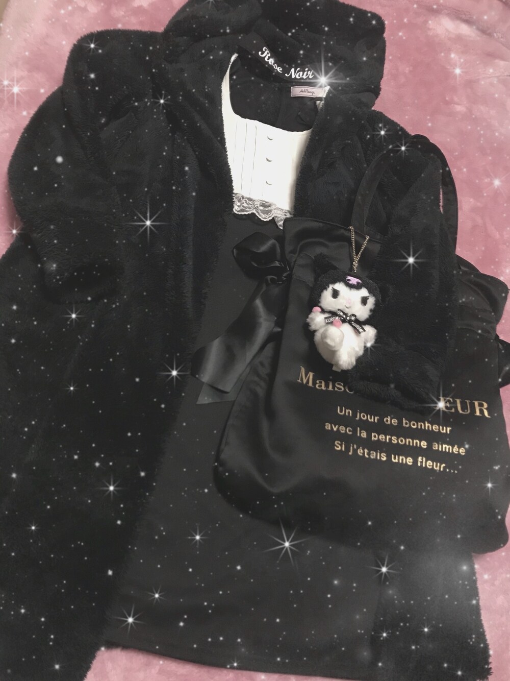 黒コーデ( o̴̶̷᷄௰o̴̶̷᷅ )❤︎ Ank Rougeのワンピース実は半袖なので中に長袖のレース着たりしてます w . 上着に黒のモコモコ着てます 。 結構暖かいので大活躍です🥂🎀 .