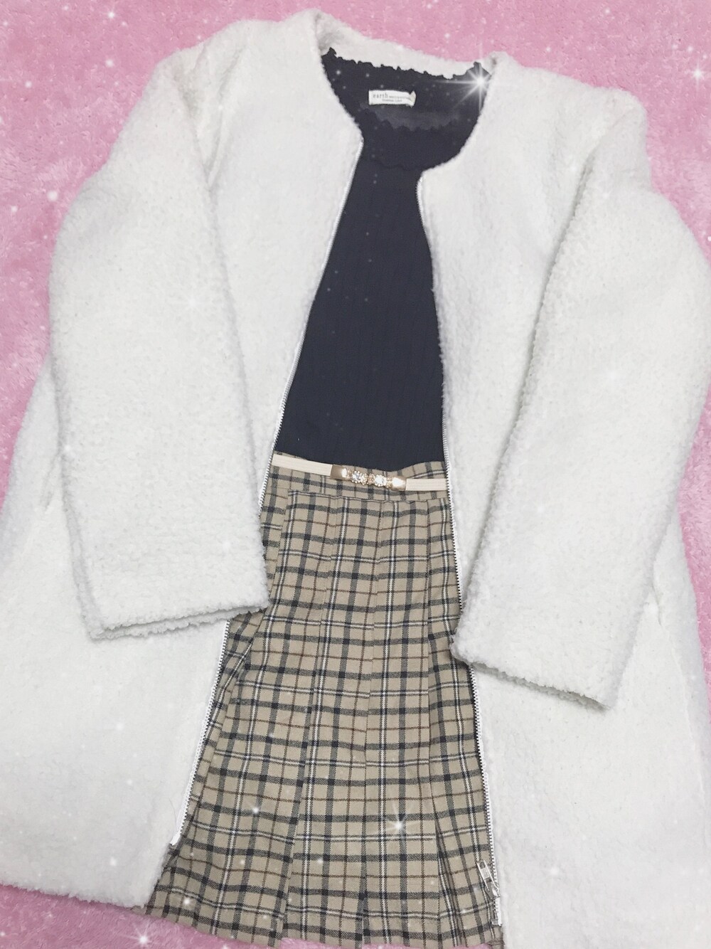 御観覧ありがとうございます🎀 . 上のトップスはデコルテ部分が透けている薄手のニットです ❤︎ 黒の無地にタータンチェックを合わせるのがお気に入りです ( o̴̶̷᷄௰o̴̶̷᷅ )