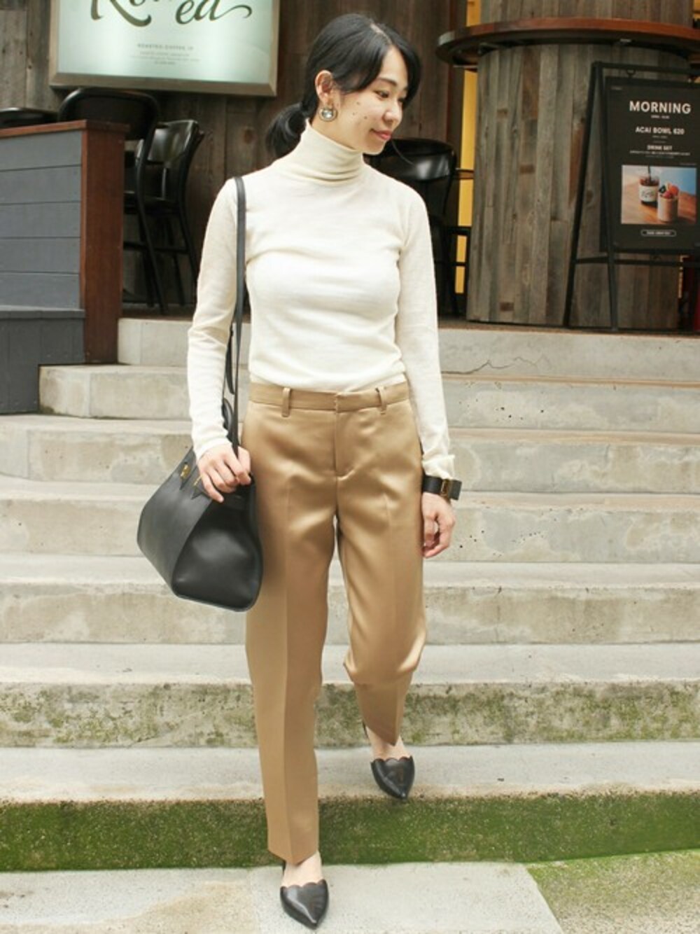 秋のオフィススタイルにお勧めコーディネート。 綺麗な光沢が目を引くECUIのパンツ。 着こなし次第でオンオフ活用可能です!