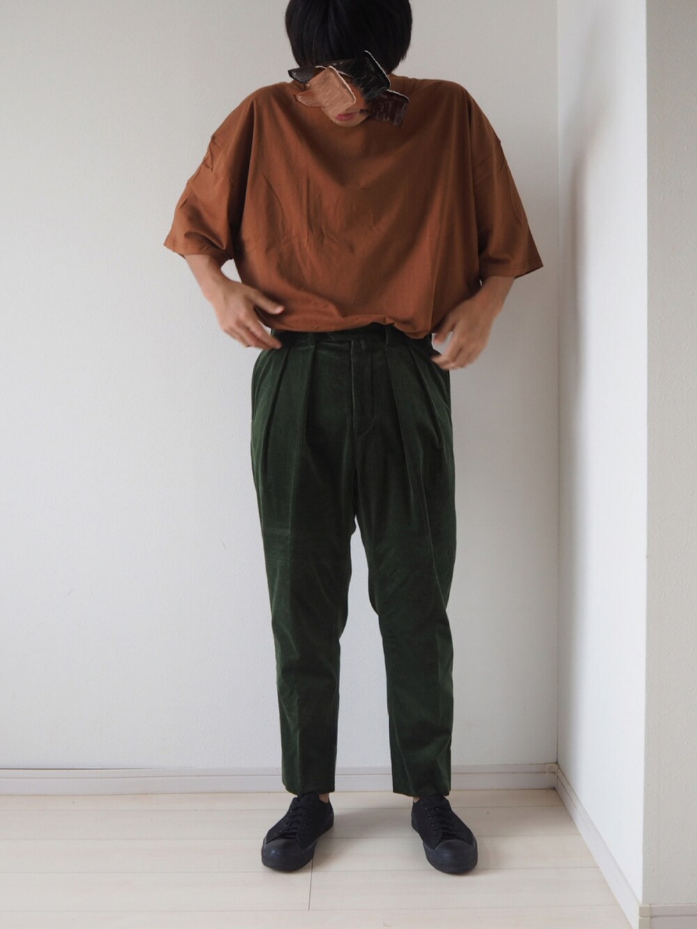 studio nicholsonのtシャツ neatのテーパードパンツ。