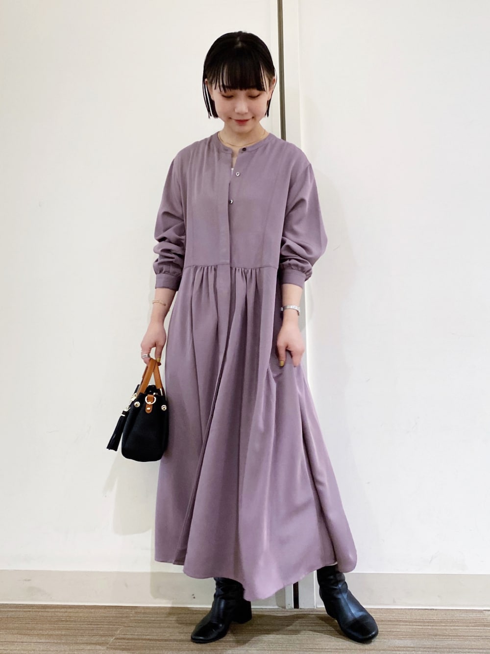 一枚で決まるワンピースです♪ 今回はブーツを合わせてきれいめに スタイリングを組みました。 秋はくすんだピンクが着たくなりますね^ ^ Instagram @u_k_a_2
