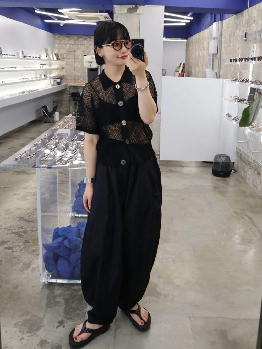 透け感トップスで黒でも重たくならない◎ ゆるパンツ×リカバリーサンダルで楽ちんバランス