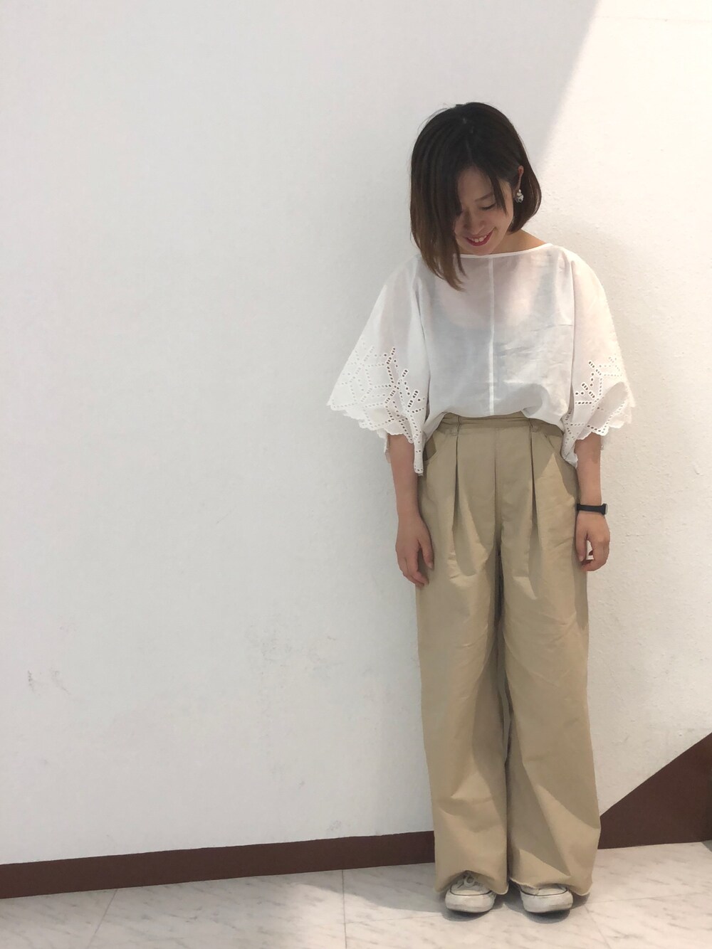 シンプルだけど、 夏には王道のベージュ×白コーデ。 earthのポンチョ形ブラウスは、 プチプラなのに形がきれい✨ 二の腕もしっかりカバーで助かります👏 こちらのタックパンツは本当に使いやすいので、この夏着倒します! まだまだフェア開催中です! 是非お近くのgreen parksへお立ち寄りください♡