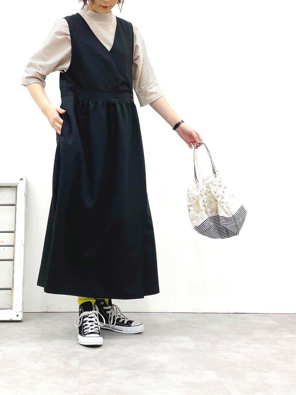 ○tops○ ベージュストライプがクラシカルなショート丈ブラウス 前後両面で着用可能で 前ボタンを外して羽織りにしたりなど… さまざまな着こなしが楽しめるアイテム◎ 裾ヒモは絞ることができるので、 お好みの丈感に調整できる万能ブラウス ○one piece○ カシュクール風のデザインワンピース フロントのタックがポイントになっている ジャンパースカート! 裏地なしですが、透けないので インナー次第で長い季節着られるアイテム。 Instagram▶︎▶︎@pdd_oky