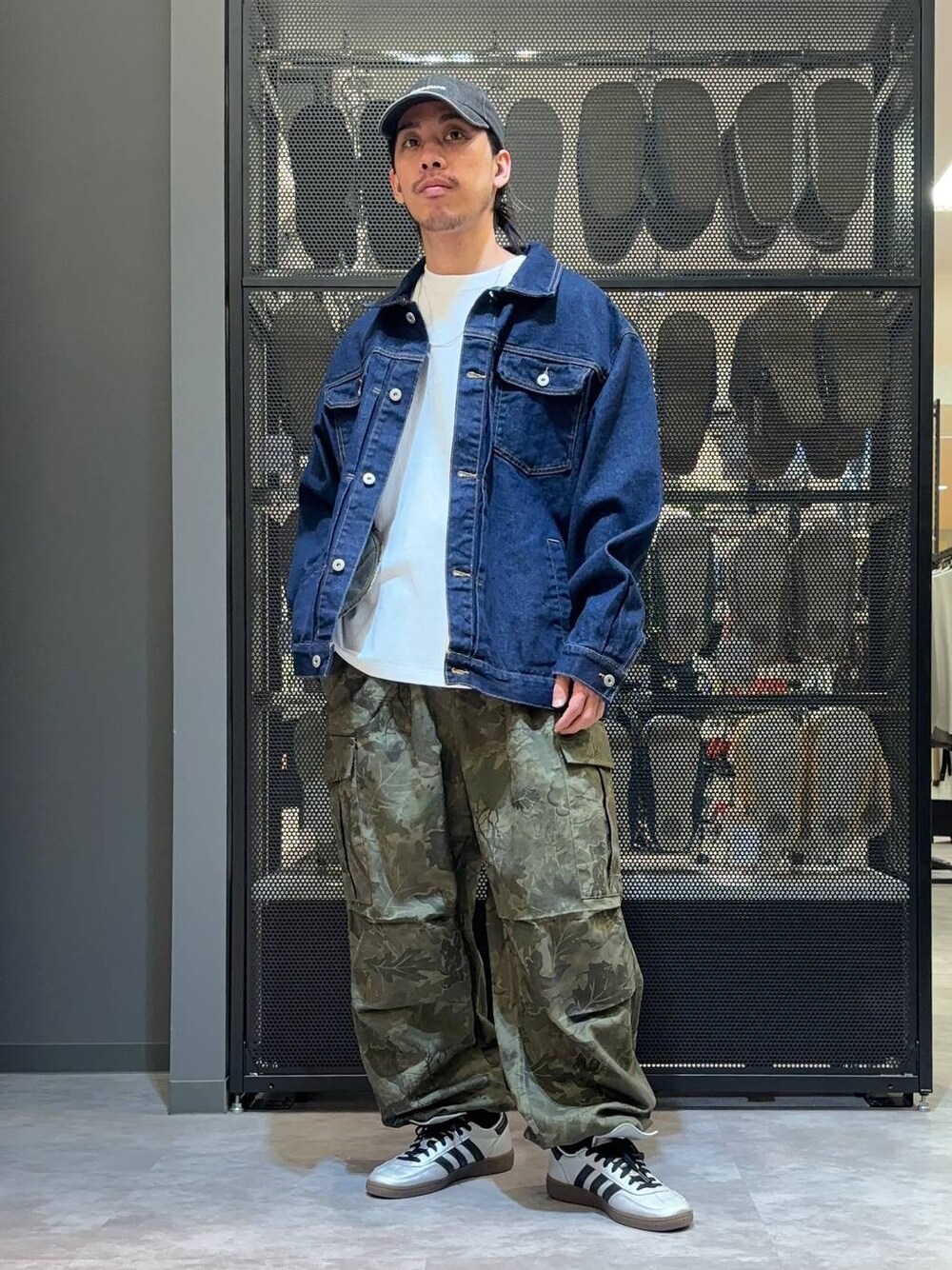 久しぶりの投稿はお気に入りの 迷彩カーゴパンツを使用したスタイリング。 半袖のカットソーにデニムジャケットを合わせて 春のカジュアルスタイル。 暖かい所ではアウターを脱いでもカッコよく決まります! ボトムスにデザインのある物を合わせると 白Tだけでもカッコよく決まるのが良いポイント👍 Tシャツには大人気のヒゲサガラTの 最新バージョン! 今期も半袖のカットソーで登場です! お気に入りのカラー見つけて下さい!!
