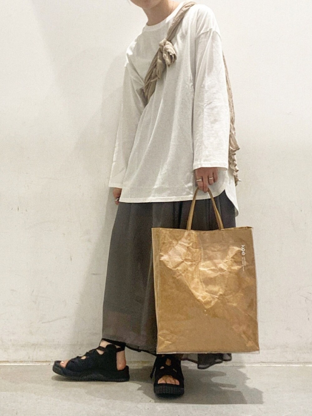 シンプルモノトーン🐼 ベージュのバッグと シャツをたすき掛けするだけで 秋感でます〜〜🍂🍂